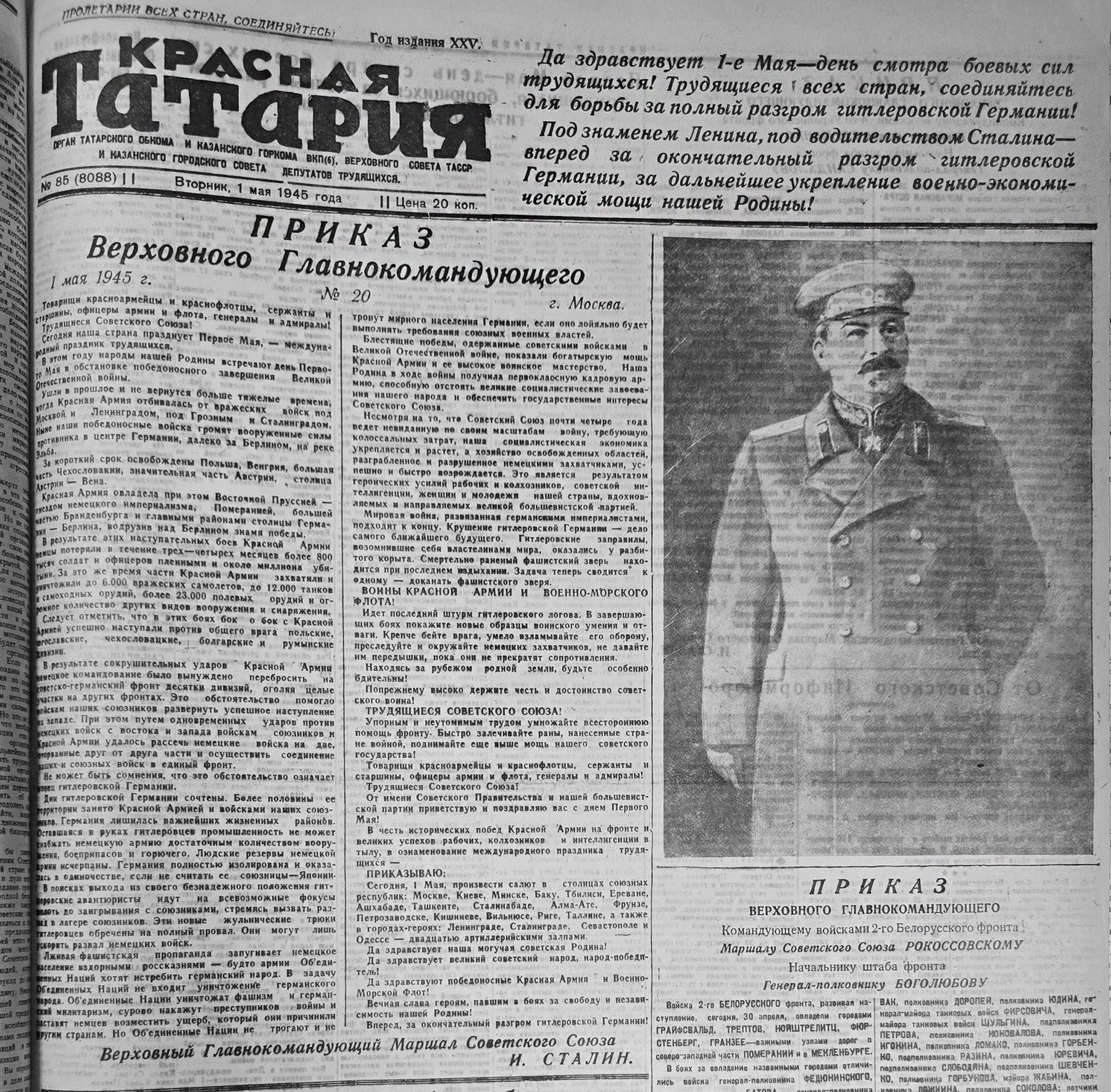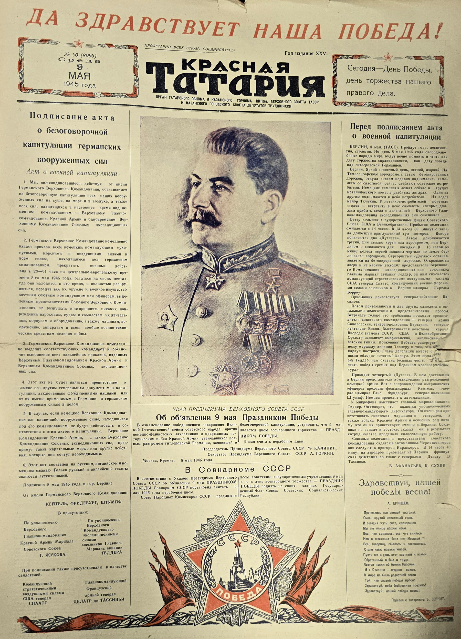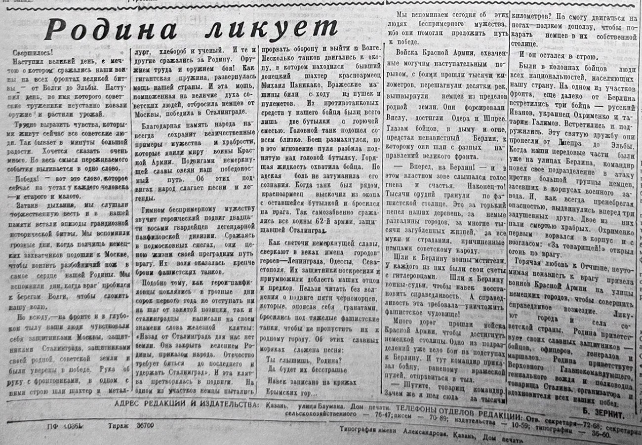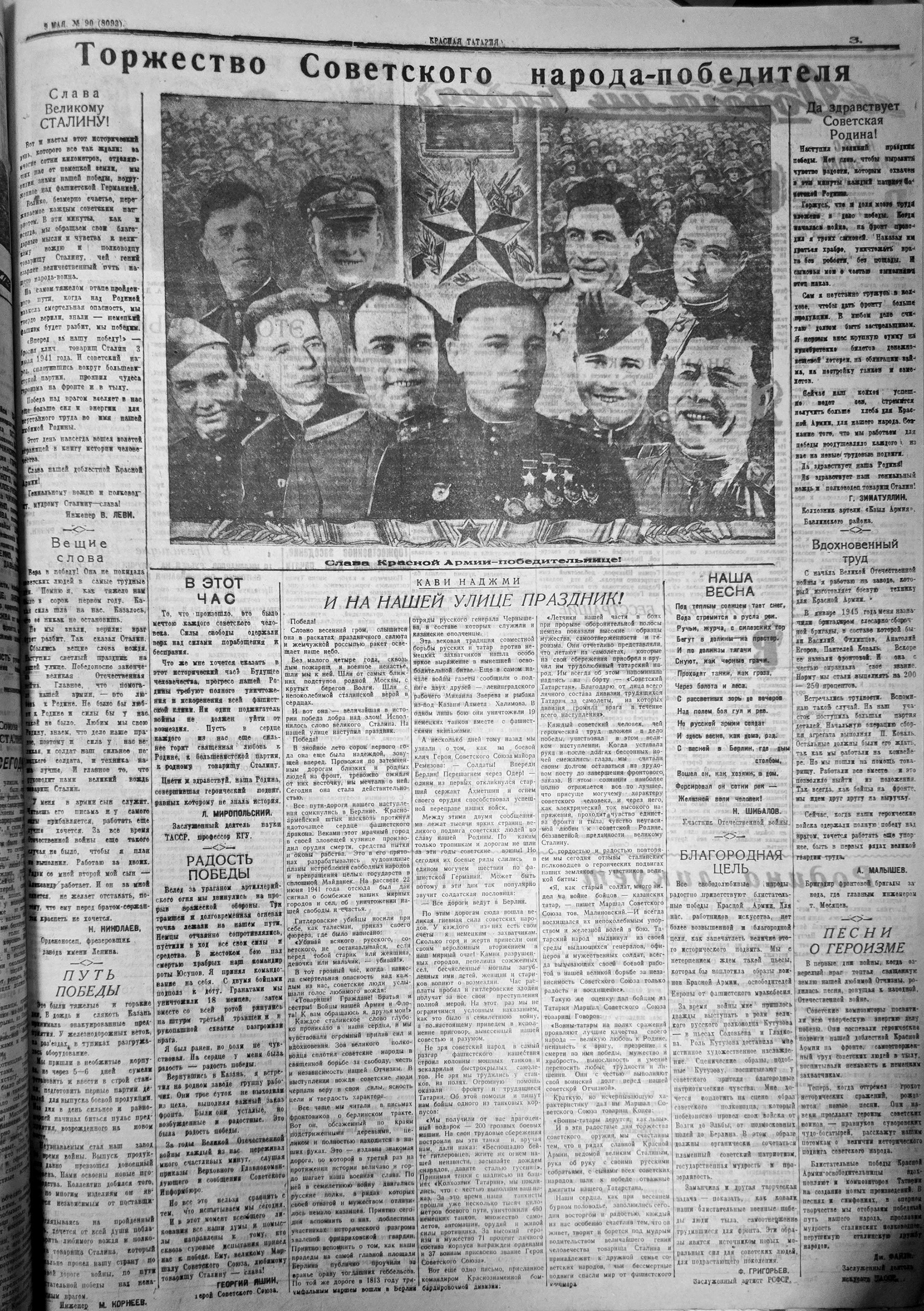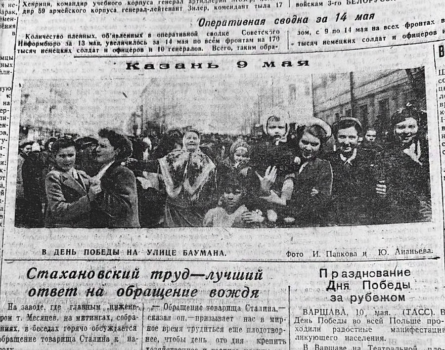 Уже в номере за 3 мая «Красная Татария» пишет о днях народного ликования – трудящиеся республики горячо приветствовали славных советских воинов, водрузивших знамя Победы над Берлином (это свершилось 1 мая).