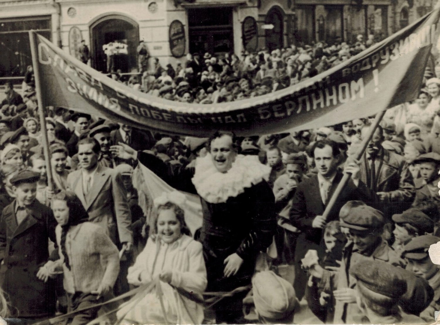 К сожалению, кадры со слоном и верблюдом на центральных улицах Казани 9 мая 1945 года не сохранились для истории. Возможно, уличное шествие было стихийным и фотографы к нему как следует не подготовились. На бескрайних просторах Интернета можно найти лишь фото самого Юрия Дурова в клоунском костюме на Баумана. За ним двое мужчин держат в руках транспарант с надписью: «Слава советским войскам, водрузившим знамя Победы над Берлином!». Весьма вероятно, что этот снимок был сделан за несколько дней до 9 мая, когда страна праздновала водружение знамени над Рейхстагом.