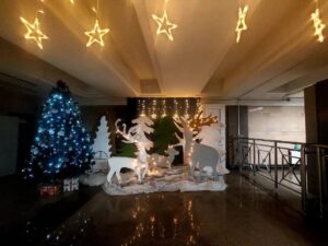 Также украшения появились на каждой станции, а во время ожидания поезда на платформе пассажиры могут слышать поздравления с наступающим праздником.