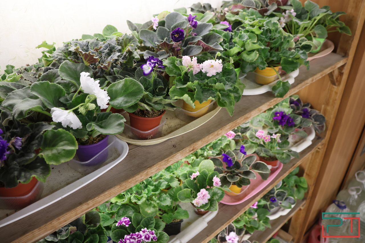 Коллекционер с 30-летним стажем сразу проводит нас в свою домашнюю оранжерею: одну из комнат в трехкомнатной квартире полностью занимают фиалки. Вдоль стен тянутся полки в шесть ярусов, подоконник тоже заставлен горшочками, под потолком – лампы, которые автоматически включаются и выключаются, чтобы создать правильное освещение. Некоторые цветы выглядят так необычно, что, если бы не бархатные листочки характерной формы, ни за что не догадаешься, что это фиалки: одни похожи на миниатюрные пионы, другие – на маленькие розочки, третьи – один в один подснежники.