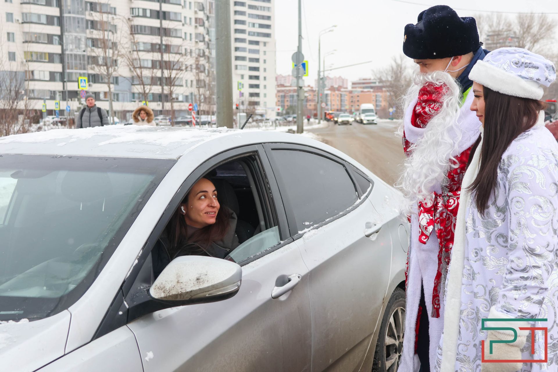 Сегодня в Казани состоялась традиционная предновогодняя акция Госавтоинспекции и ГБУ «Безопасность дорожного движения». Водителей и пешеходов встречали сотрудники ведомств в образах Деда Мороза и Снегурочки и дарили подарки тем, кто не нарушал никаких правил.