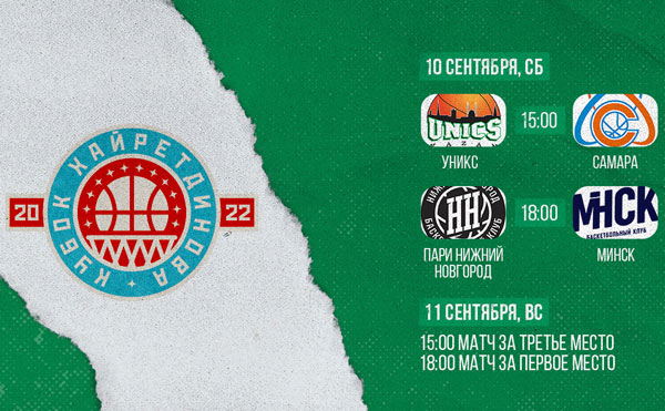 Определились все клубы-участники розыгрыша второго Кубка Александра Хайретдинова, который пройдёт 10–11 сентября в Нижнем Новгороде. 10 сентября «УНИКС» сыграет с действующим обладателем Кубка России и дебютантом Единой лиги ВТБ «Самарой», а «Пари Нижний Новгород» встретится с действующим чемпионом Белоруссии «Минском». Во второй день турнира победители разыграют трофей, а проигравшие команды определят бронзового призёра.