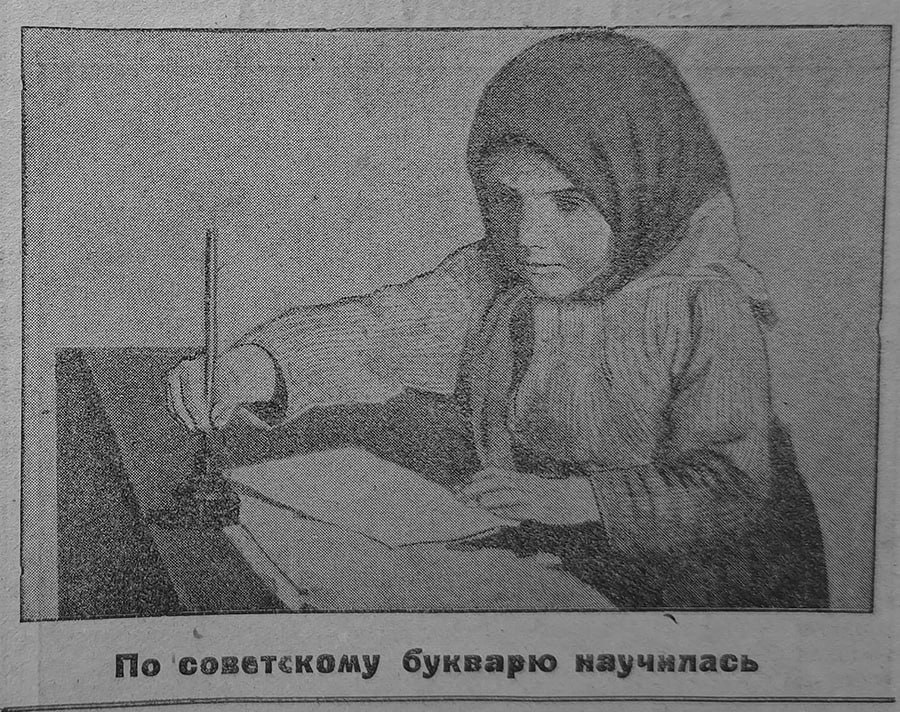В начале сентября 1925 года в нашей газете было много статей о начале учебного года в городских и сельских школах. На одном трогательном снимке запечатлена маленькая девочка в платке. Она сидит за партой и тянется перьевой ручкой к чернильнице, чтобы выполнить урок учителя. Подпись гласит: «по советскому букварю научилась».