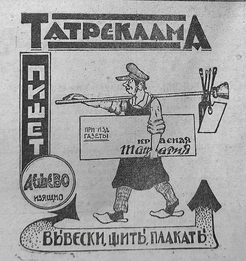 Татреклама обещала предприятиям и организациям приезд газеты «Красная Татария», сотрудники которой дешево и изящно изготавливают вывески, щиты и плакаты. Новая экономическая политика (сокращенно НЭП) – проводилась в СССР до 1928 года. Поэтому в середине 20-х лозунг: «реклама – двигатель торговли» был актуален.