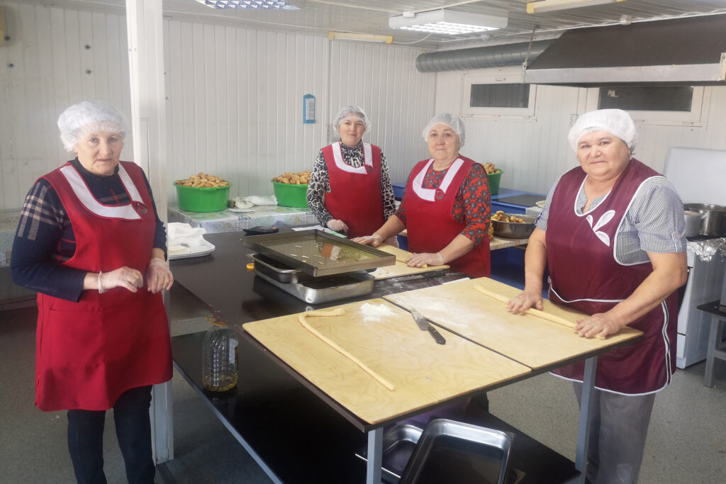 - Сегодня мы делали эчпочмаки, потом курники, сейчас готовим губадью. Работаем впятером почти каждый день. Зарплату получаем достойную и вовремя. Работа нам очень нравится! Чем дома сидеть, уж лучше делом заниматься, - считает Фирая Зарипова. - Друг друга мы давно знаем, так что работаем дружно, под песню.