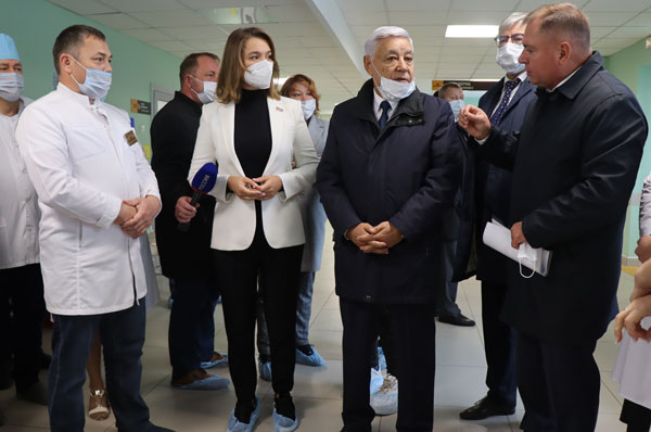 В ЦРБ Менделеевска год назад после реконструкции открылась взрослая поликлиника, в стадии завершения ремонт в детской поликлинике. В фойе больничного комплекса Фарид Мухаметшин встретился с врачами и медицинским персоналом. «Как дела? Какие проблемы? Как ситуация с ковидом?» – с ходу поинтересовался глава парламента. «Ситуацию держим под контролем, – ответила главный врач ЦРБ Оксана Бахматова. – Сегодня уже более половины менделеевцев вакцинированы».