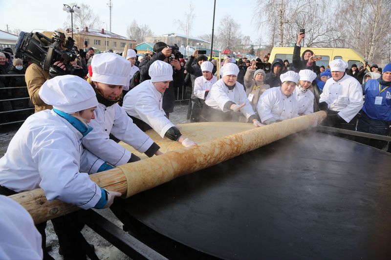Самый большой блин испекли на фестивале санок в Мамадыше