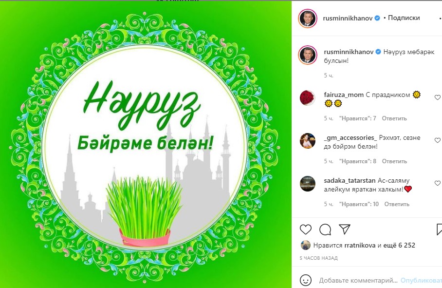Рустам Минниханов поздравил татарстанцев с Наврузом