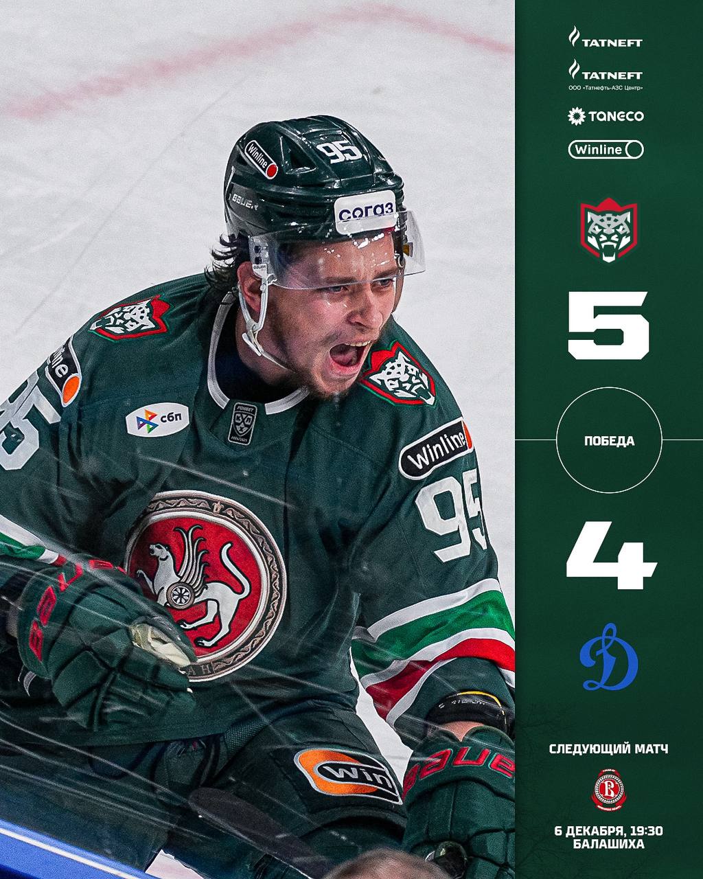 «Ак Барс» одержал волевую победу над «Динамо» со счетом 5:4