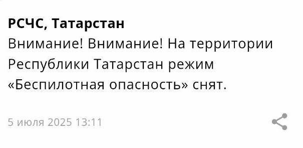 МЧС: в Татарстане снят режим беспилотной опасности