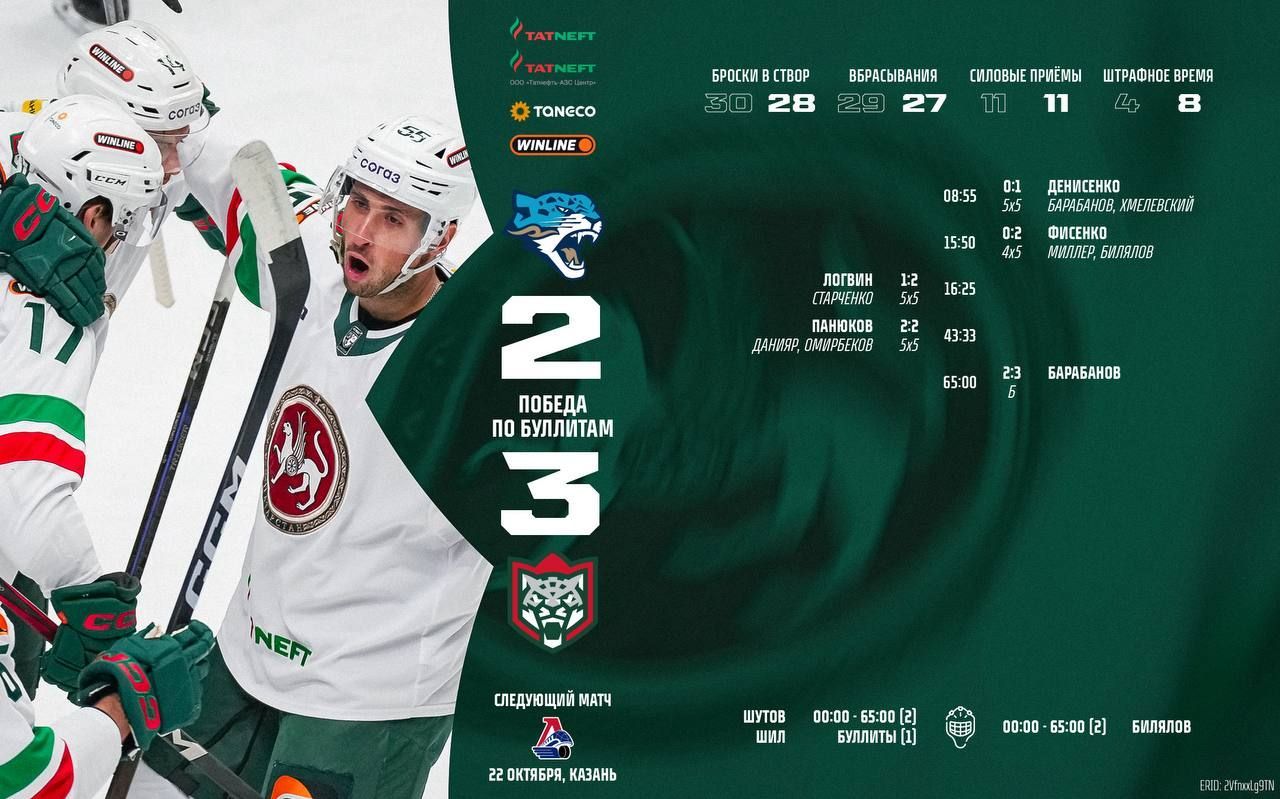 «Ак Барс» по буллитам вырвал победу у «Барыса»