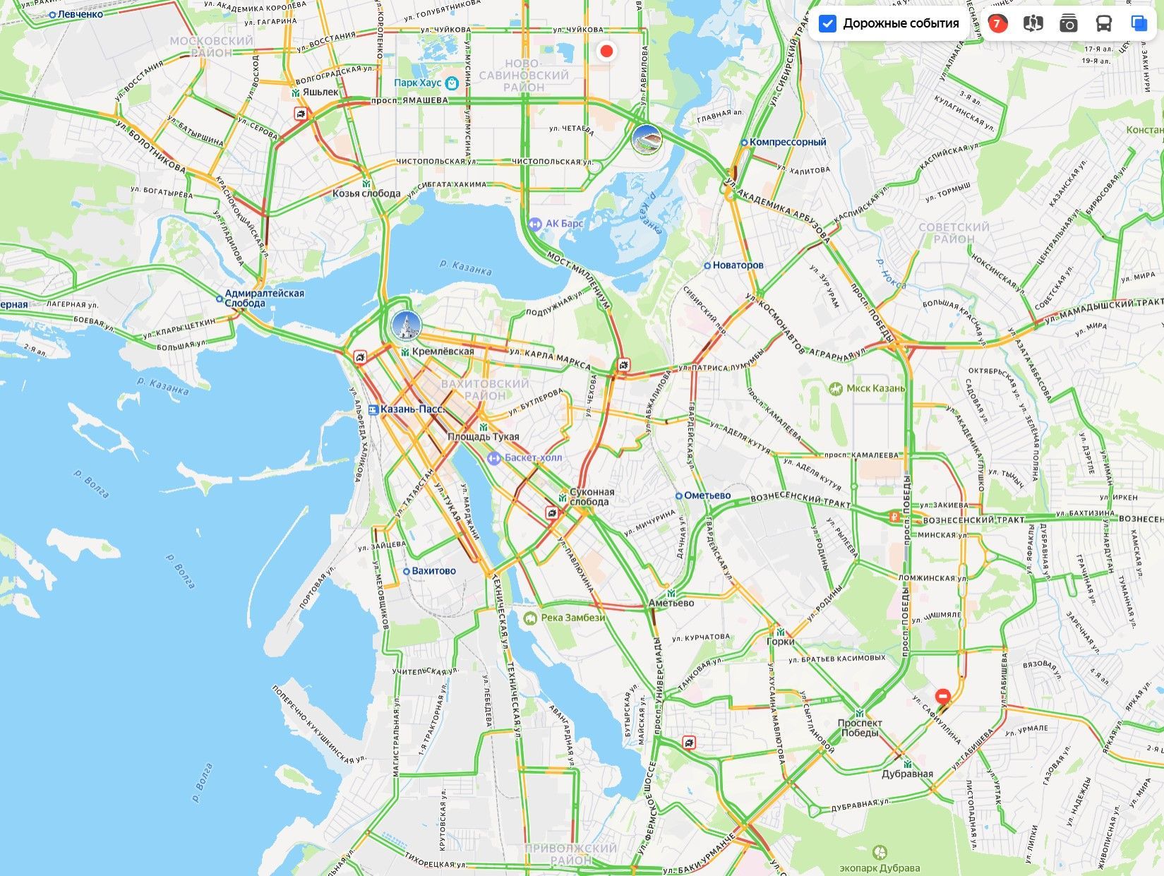 • Пробки в Казани достигли 7 баллов