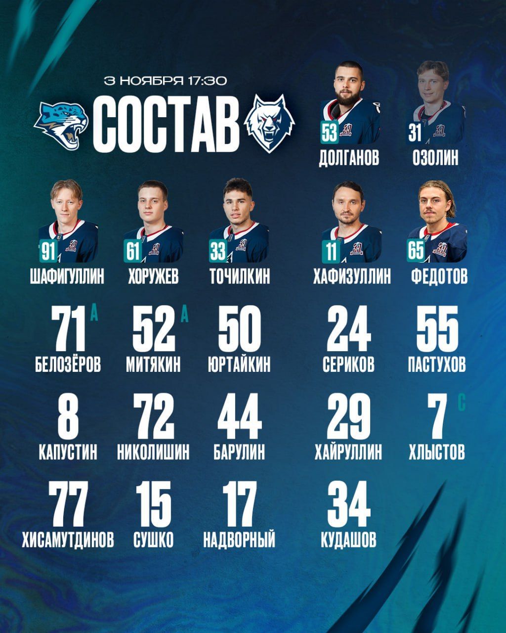 • «Нефтехимик» опубликовал состав на матч с «Барысом»