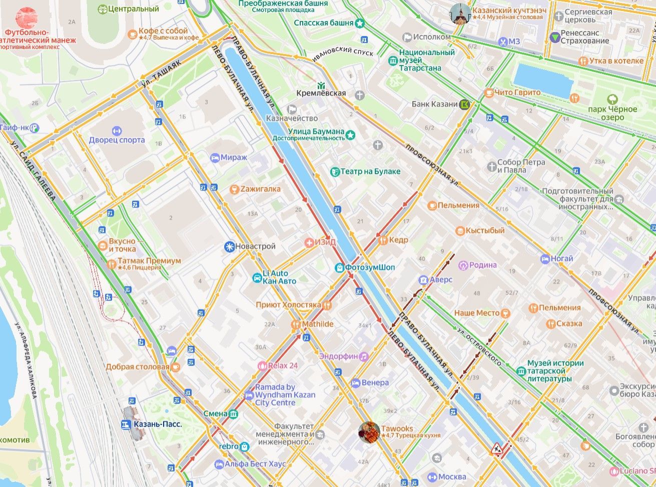 • Из-за потопа образовалась пробка на Лево-Булачной улице в Казани