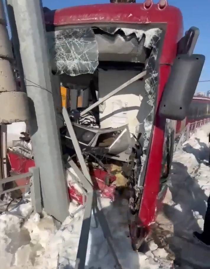 В Казани трамвай протаранил другой трамвай и врезался в столб – видео