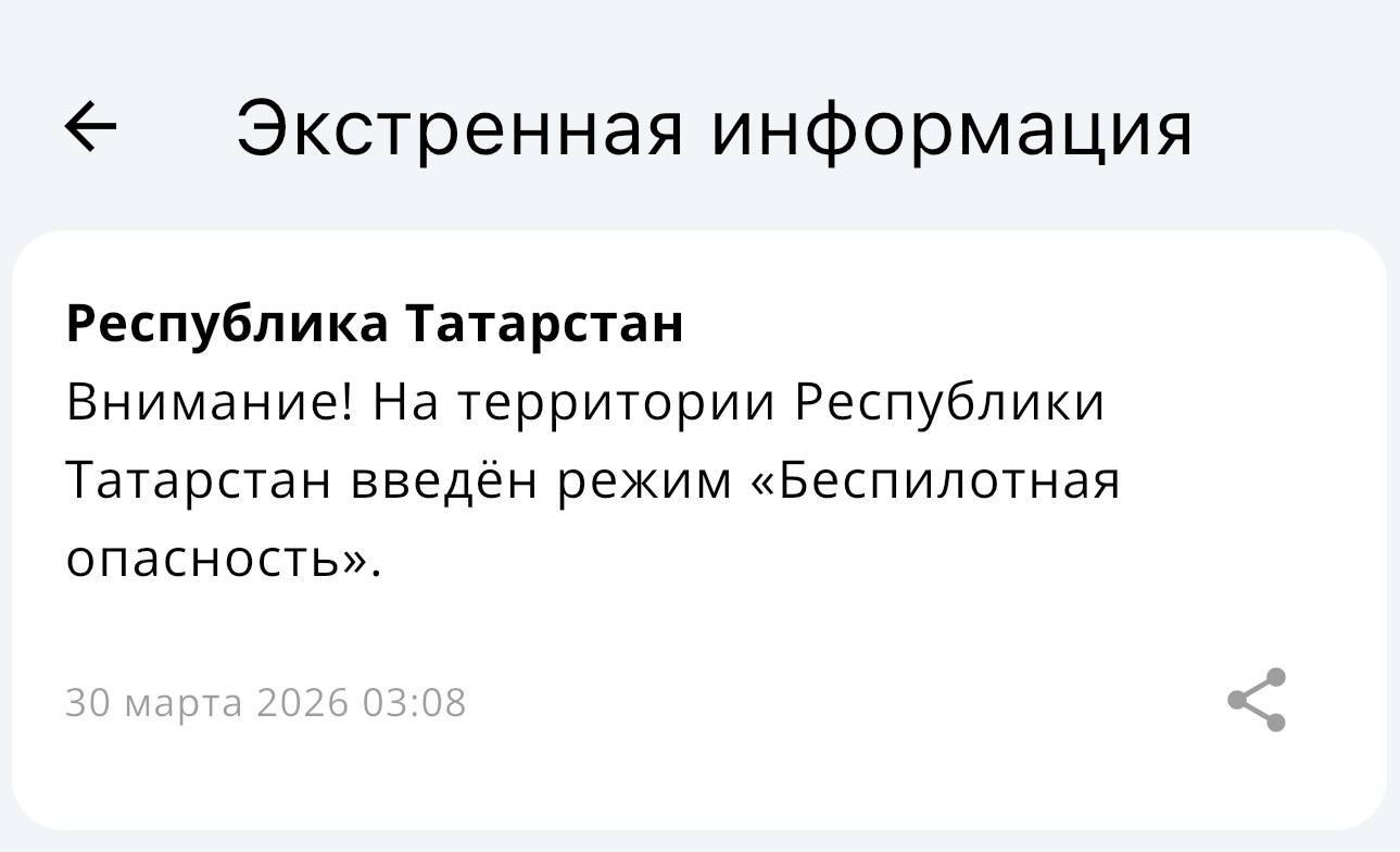 Вторую ночь подряд в Татарстане объявляется беспилотная опасность