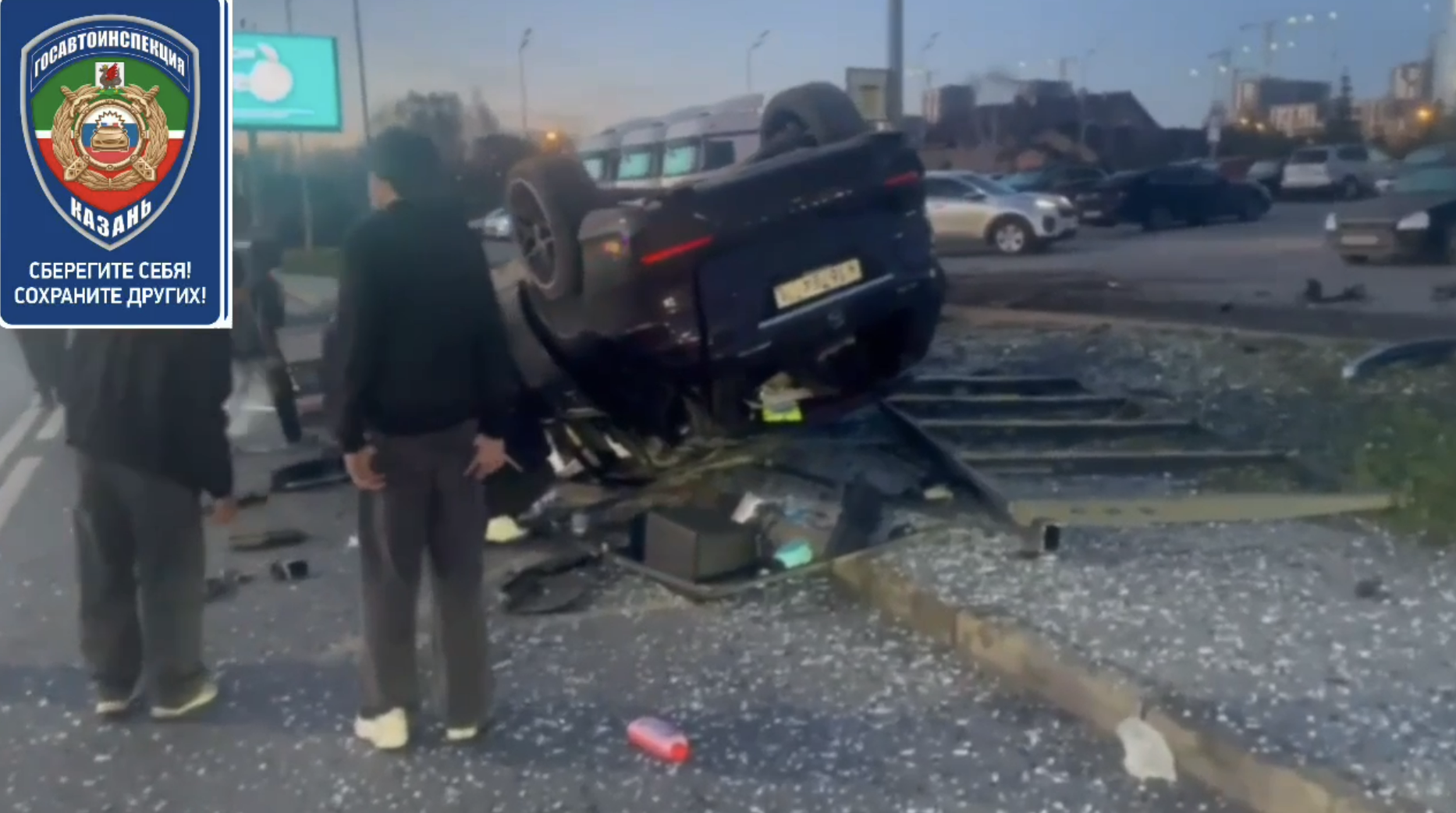 • В Казани Mercedes налетел на остановку и перевернулся