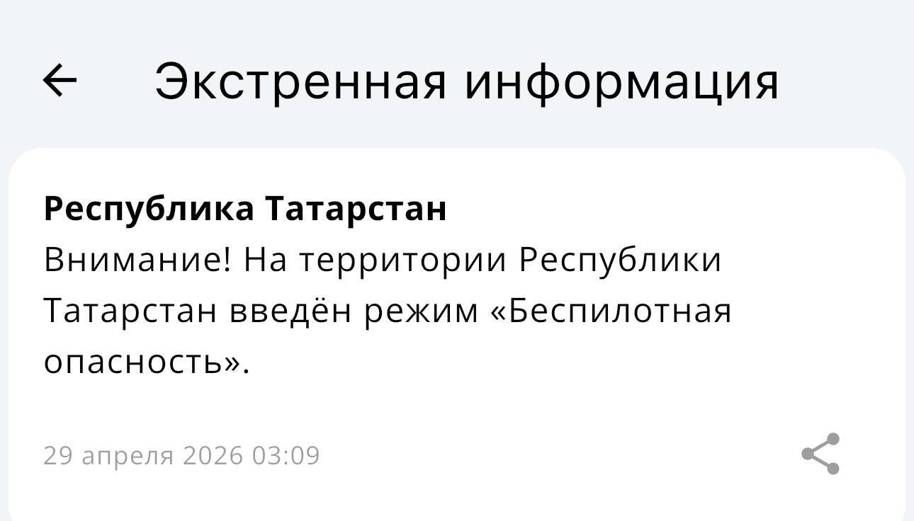 • В Татарстане с трех утра действует режим беспилотной опасности, небо закрыто