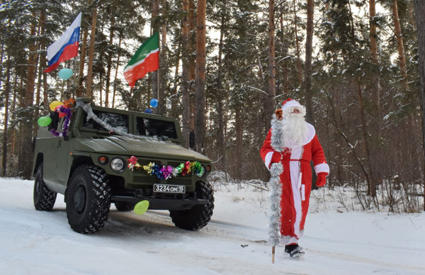 Как-то непривычно видеть Деда Мороза, выходящего из бронемашины «Тигр», украшенной шарами, флагами и мишурой. Но именно на ней приехал главный новогодний волшебник в гости к ребятам в Дербышкинский детский дом-интернат в Казани.