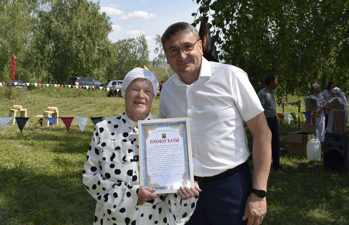 Поздравил гостей праздника заместитель главы района Ринат Хамидуллин. Он также вручил благодарственные письма районного отдела культуры ветеранам – участникам фольклорного ансамбля «Хатира».