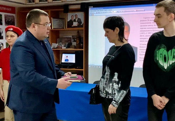 Указом Президента России Владимира Путина уроженец Алексеевского района Александр Сергеев награждён орденом Мужества. Награду вдове военнослужащего Галине Сергеевой передал глава муниципального образования Сергей Демидов.