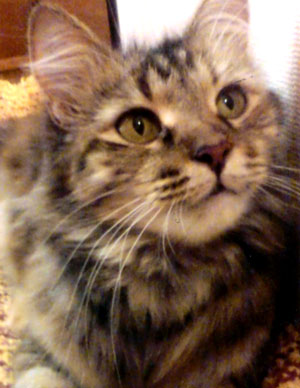 Мягонькая, ласковая мурлыка. С утра ложится на меня и в приступе нежности тычется в лицо, лижет руки и заглядывает в глаза…