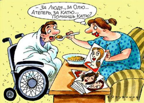 – Доктор, у моей жены болит горло и пропал голос. Что делать?
