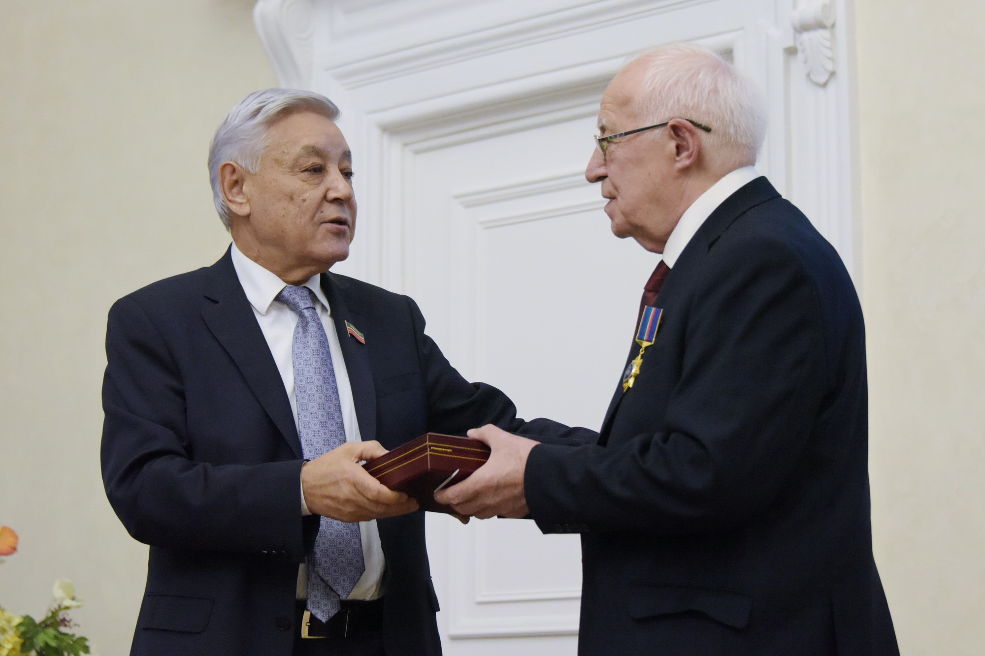 Фарид Мухаметшин пожелал юбиляру доброго здоровья и долгих лет жизни. Фарид Мухаметшин наградил Кева Минуллиновича орденом «Дуслык». Глава парламента также вручил Кеву Салихову Благодарность Государственного Советника Татарстана Минтимера Шаймиева и Благодарственное письмо председателя Государственного Совета РТ.