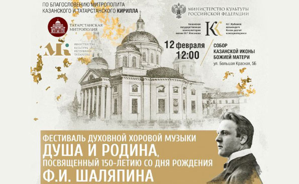 С 12 февраля по 24 июня Казанская государственная консерватория имени Н.Г.Жиганова проводит фестиваль духовной хоровой музыки «Душа и Родина», посвящённый 150-летию со дня рождения Ф.И.Шаляпина.