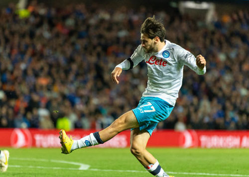 Экс-игрок казанского «Рубина», грузинский полузащитник Хвича Кварацхелия, выступающий сейчас за итальянский «Наполи», нанёс восемь ударов по воротам в матче второго тура группового этапа Лиги чемпионов с «Рейнджерс», который его команда выиграла со счётом 3:0. Хвича вышел на поле в стартовом составе и был заменён на 89-й минуте. Помимо восьми ударов, Кварацхелия стал лучшим в матче по касаниям в чужой штрафной (8) и выигранным единоборствам (10 из 16). В нынешнем сезоне он принял участие в восьми матчах во всех турнирах за «Наполи», в которых записал в свой актив четыре гола и сделал одну результативную передачу. В первом туре группового этапа Лиги чемпионов «Наполи» разгромил «Ливерпуль» со счётом 4:1. В следующем туре итальянский клуб встретится 4 октября с «Аяксом».