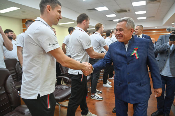 «Уважаемые игроки, тренерский состав, руководство, перед сезоном мы по традиции собираемся вместе. Зинэтула Хайдярович Билялетдинов сегодня отсутствует, но он всегда с нами. Хочу еще раз поблагодарить вас за прошлый сезон. Он был непростым, и у нас получилось не все, и не на сто процентов. Но мы гордимся нашей командой и вашей игрой. Мы болеем за вас, переживаем, вместе с вами радуемся и расстраиваемся. Спорт есть спорт, но, как бы ни было, надо быть на два миллиметра впереди, потому что все команды достойные. Все хотят победить. Не только усердие, но и везение важно, чтобы Всевышний нас не бросил», – тепло обратился Рустам Минниханов к участникам встречи.