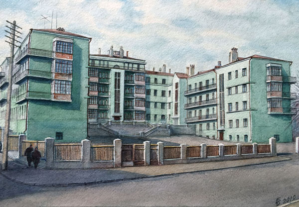Мергасовский дом стал первым многоквартирным домом в Казани, подключённым к водопроводу. Построен в 1928 году (рисунок).