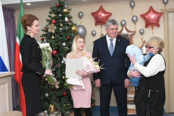 Малыша и его маму Карину вместе с мэром встречали депутат Госсовета Татарстана Олег Николаев, депутаты горсовета Евгений Архипов и Ринат Алимбеков, заместитель генерального директора КАМАЗа Жанна Халиуллина.