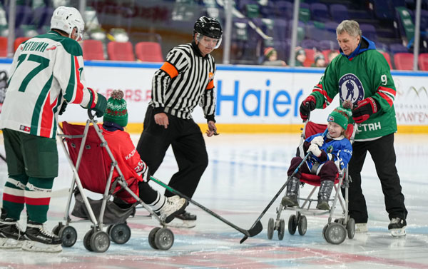 Благотворительный матч «Хоккей каждому» между командами «Вымпел» и «Метеор», составленными из двух десятков детей с нарушениями опорно-двигательного аппарата, с успехом прошёл в Казани.