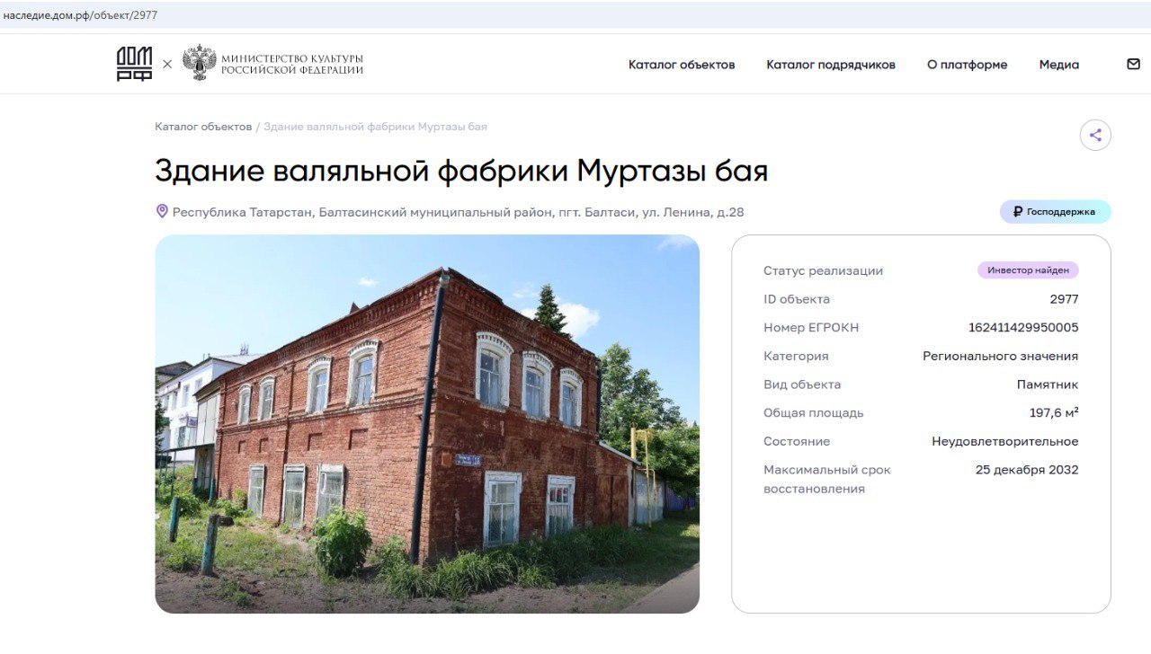 В Балтасинском районе восстановят историческое здание валяльной фабрики Муртазы-бая. Объект, построенный в XIX веке и сейчас находящийся в аварийном состоянии, инвестор выкупил всего за один рубль, рассказали в Комитете Татарстана по охране объектов культурного наследия.