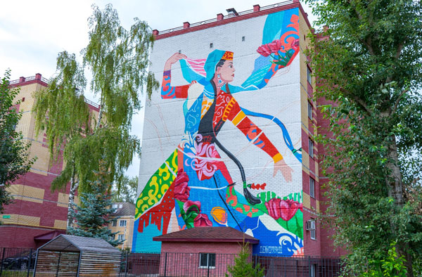 Напомним: этим летом в Зеленодольске на фасаде дома №27 на улице Столичной появился мурал «Танец». На нём – пляшущая девушка в татарском национальном костюме. Движения молодой женщины подхватил ветер, что символизирует свободу, творчество и юность.