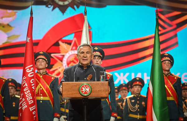 «День Победы занимает особое место в нашей памяти и наших сердцах. Мы свято чтим самоотверженный героизм воинов-освободителей. Это истинный пример патриотизма и неиссякаемой силы духа. Ратный и трудовой подвиг народа во имя Великой Победы стал символом национального единства поколения, с честью перенёсшего тяжёлые военные испытания, блокаду Ленинграда, ужасы заключения в фашистских концлагерях и восстановление сотен разрушенных сёл и городов», – подчеркнул Рустам Минниханов.