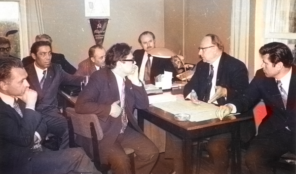 Совещание в ТатНИИ (слева направо): Р.Т.Булгаков, Ф.М.Хаммадеев, У.Г.Саттаров, Ю.Н.Яшин, В.Д.Шашин, Ф.Г.Гайнуллин.
