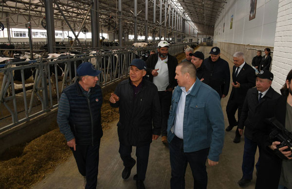Затем Рустам Минниханов осмотрел животноводческий комплекс АПК «Продпрограмма». Пояснения давал генеральный директор Рифат Мутигуллин. На ферме содержится 4307 голов КРС, в том числе 3548 коров. Ежедневный надой достигает 115 тонн. В целях увеличения поголовья в этом году планируется строительство ещё одного корпуса на 600 коров.