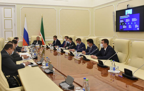 Заместитель Председателя Правительства РФ Дмитрий Чернышенко и полномочный представитель Президента РФ в Приволжском федеральном округе Игорь Комаров в режиме видеоконференцсвязи провели сегодня совещание по социально-экономическому развитию с главами субъектов ПФО. В работе совещания принял участие Президент Татарстана Рустам Минниханов.