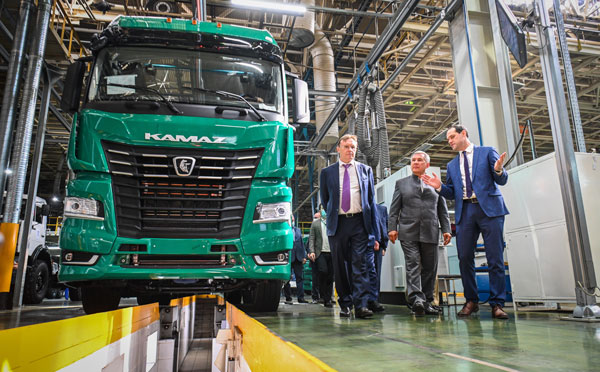В ходе беседы заводчане интересовались перспективами экспорта продукции КАМАЗа. Рустам Минниханов отметил, что перспективным зарубежным рынком для челнинского автогиганта является Средняя Азия – Казахстан, Туркменистан, Узбекистан. Есть планы по развитию сотрудничества с Турцией. «К тому же у нас хороший спрос на внутреннем рынке. Большие перспективы по пожарно-спасательной технике. Сегодня КАМАЗ – это бренд отечественного машиностроения», – подчеркнул Президент.