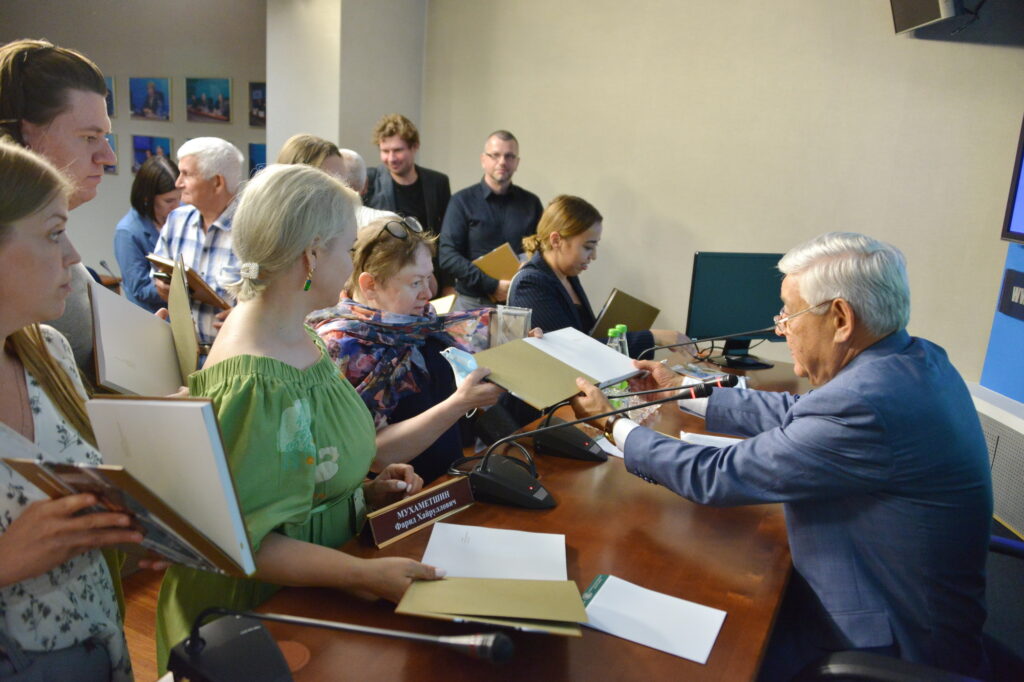 Приятным сюрпризом для журналистов стала подаренная книга «Фарид Мухаметшин: виражи судьбы», которую глава парламента лично подписал каждому участнику пресс-конференции.