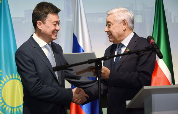 От имени Президента Татарстана Фарид Мухаметшин также передал Ерлану Искакову поздравительные письма Рустама Минниханова Президенту Республики Казахстан