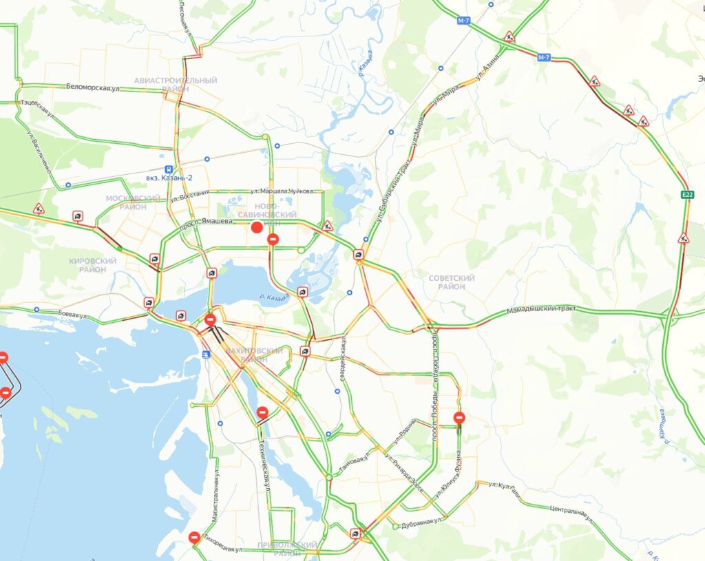В среду вечером Казань встала в 7-балльных пробках. Таковы данные сервиса «Яндекс.Карты».