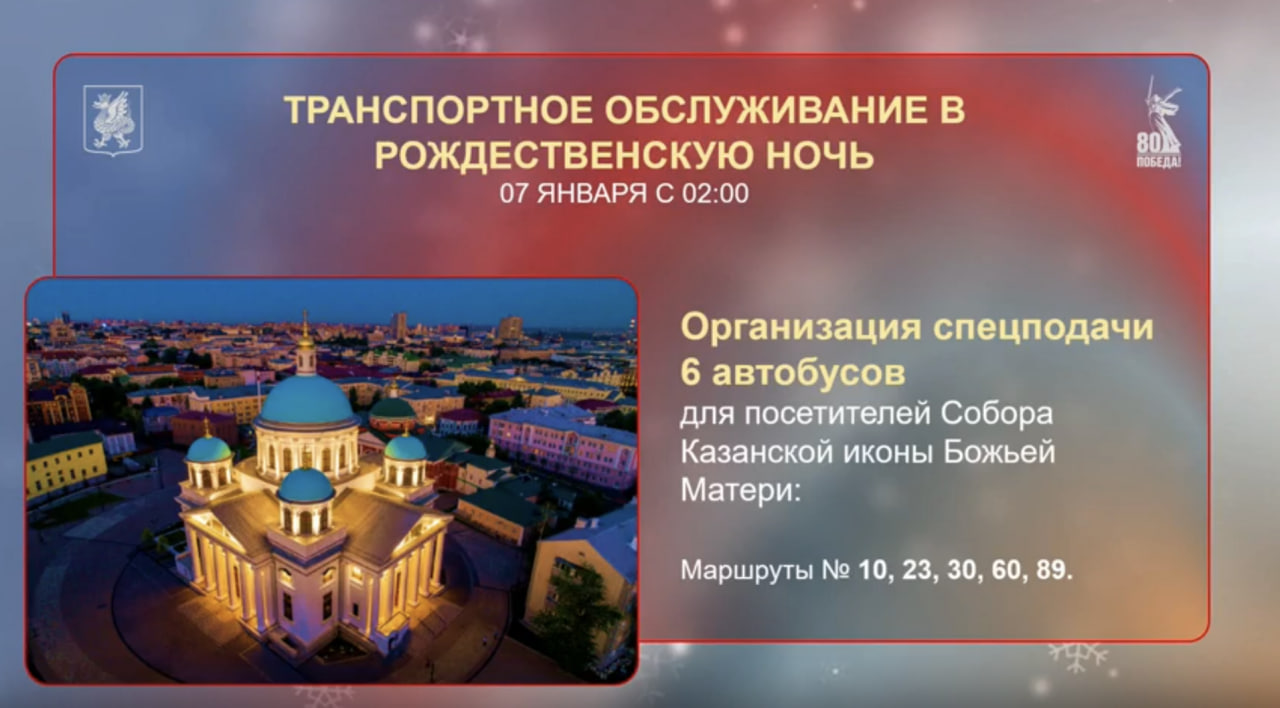 В Рождество в связи с проведением праздничной службы для верующих с 2.00 организуют спецподачу шести автобусных маршрутов.