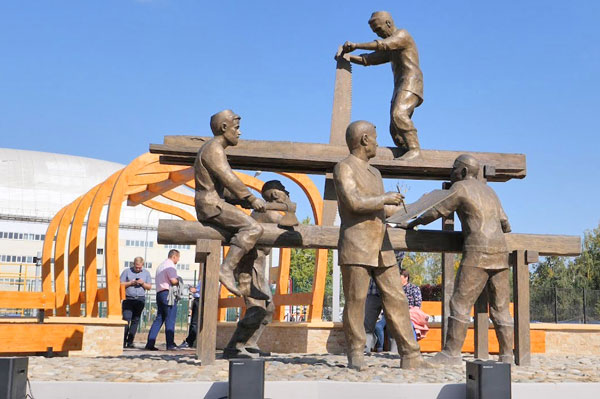 В память о плотниках, живших в селе Бишбалта, в Казани установлен памятник.