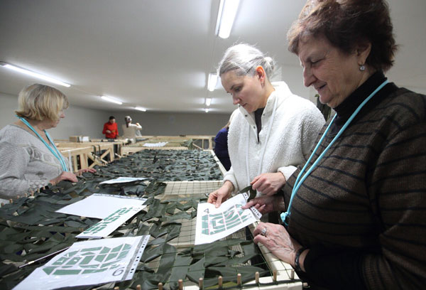 «Серебряные» волонтёры плетут маскировочные сети для фронта