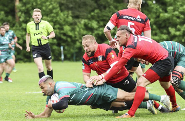 Первая же атака казанцев завершилась попыткой – отличился Алексей Бурдин. Тут же последовала новая атака, и только ошибка в двух метрах от зачётной зоны не позволила «Стреле» увеличить преимущество. Словно почувствовав, что казанцы в этот день настроены на атаку, игроки «ВВА» ответили быстрым прорывом и сравняли счёт. Потом в составе гостей был удалён Людик, на поле наступило относительное затишье, но к середине тайма «Стрела» занесла ещё раз – Тромп и Гриняев разыграли хорошую комбинацию, и Омари (на снимке) первым оказался в зачётке соперников. И хотя «Стрела» в первом тайме ещё десять минут играла в меньшинстве, его концовка осталась за казанской командой. Кобус Мараис совершил попытку перед самым перерывом и забил «реализацию» – 19:7.