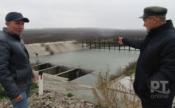 Фаяз Кабиров (слева) и заместитель директора «Татмелиоводхоза» Раиль Каримуллин около нового водосбросного гидротехнического сооружения.