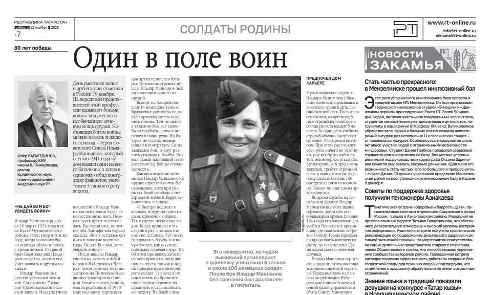 Кроме того, Багаутдинов завоевал победу на республиканском конкурсе «Патриот России» за лучшее освещение в СМИ темы патриотического воспитания в 2025 году.